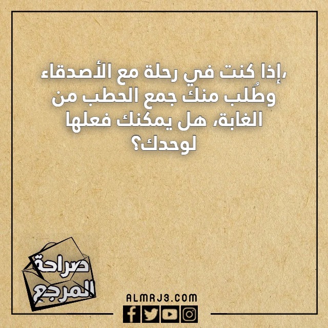 - إذا كنت في رحلة مع الأصدقاء، وطُلب منك جمع الحطب من الغابة، هل يمكنك فعلها لوحدك؟