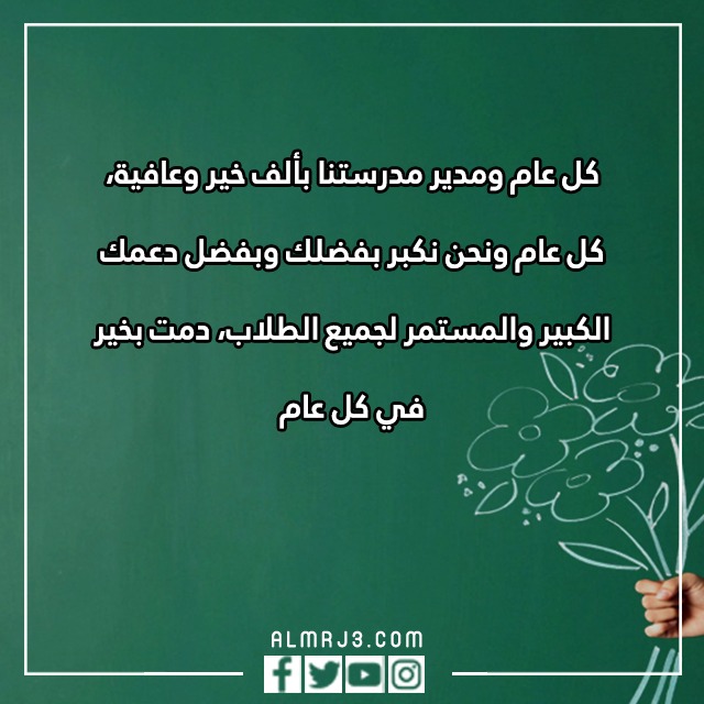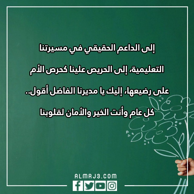 - أبعث لك كلماتي يا حضرة المدير الموقر لعلّها تليق بقامتك الجليلة، يا صاحب الفضل والعظمة، وقدوتنا الأولى في الوصول إلى القمة، كل عام وأنت بألف خير.
