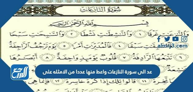 عد الى سورة النازعات واعط منها عددا من الامثله على ، من الأسئلة التي تواجه طلاب المدارس في المملكة العربيّة السّعودية، والتي تتعلّق بمنهاج النّحو واللغة العربيّة، ودراسات القرآن الكريم، ولا بدّ لكلّ مسلم وعربي أن يعرف الإجابة على هذا السّؤال، وفي هذا المقال يقدّم موقع المرجع عددًّا من الأمثلة النحوية من سورة النازعات في القرآن الكريم.