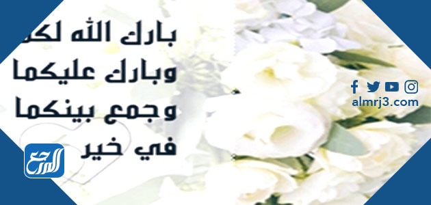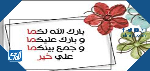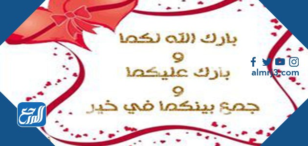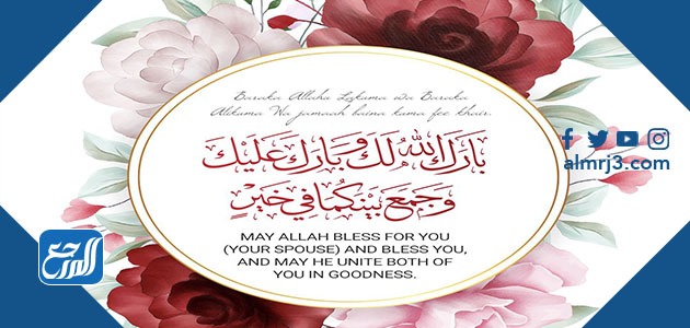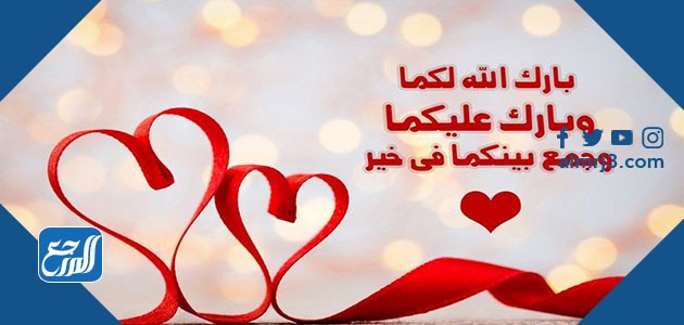 - بارك الله لكما وبارك عليكما وجمع بينكما في خير ألف مبروك على الزفاف السعيد، أسأل الله تعالى أن يجعل حياتكما مليئة بالمودة والرحمة وأن يبارك لكما فيها.