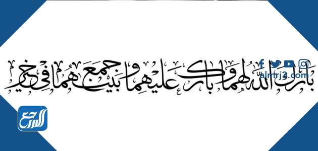 - بارك الله لكما وبارك عليكما وجمع بينكما في خير اللهم اجمع بينهما في الخير، وارزقهما الحب والمودة، وأطل في أعمارهما وأعمار ذريتهما.