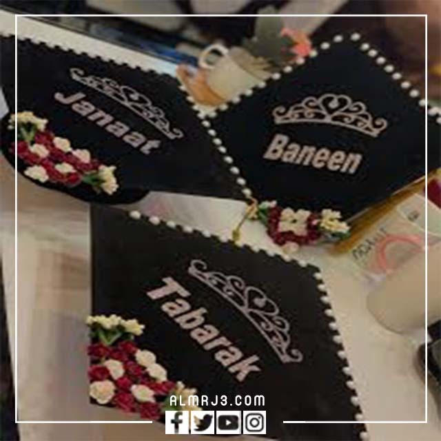 صور قبعات تخرج مكتوب عليها اسماء شباب