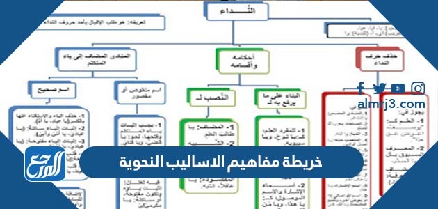 من خلال الخريطة الموضحة في الصور السابقة يتبين أن الأساليب النحوية في اللغة العربية تتفرع إلى الأنواع التالية:
