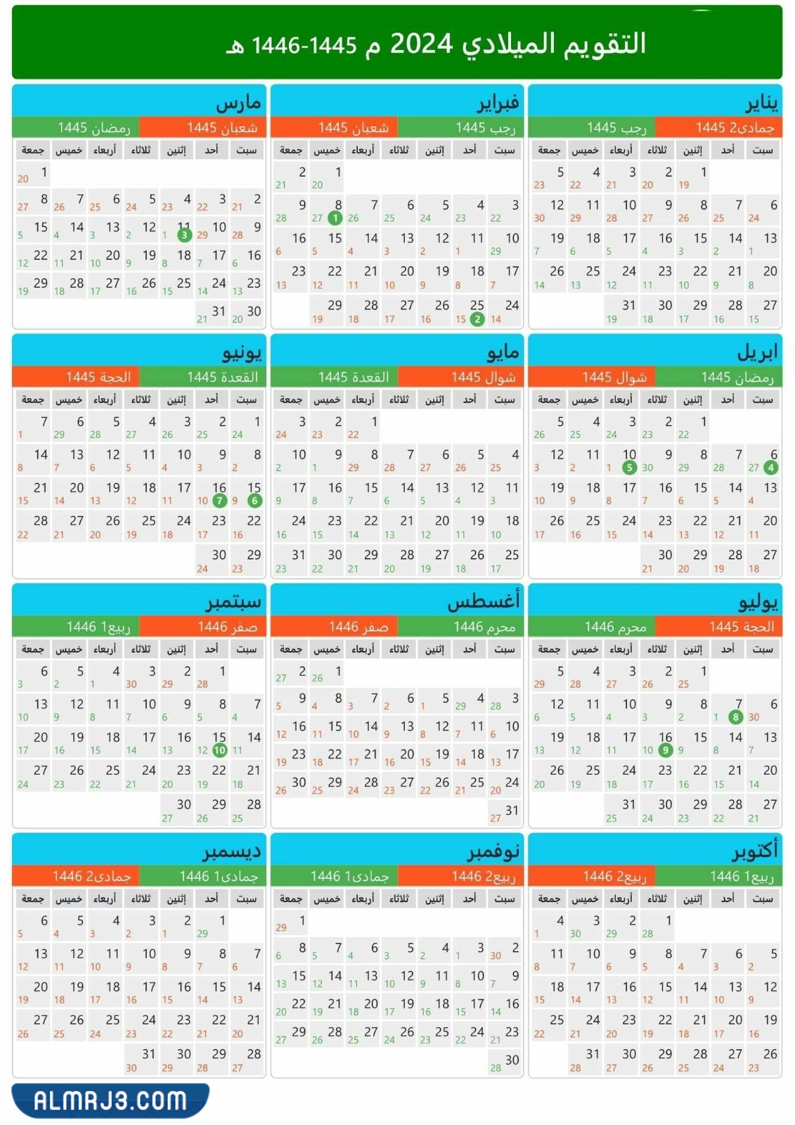 التقويم الهجري 1446 والميلادي 2024