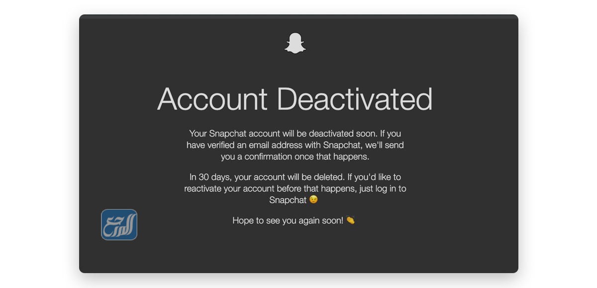 - بعد إلغاء تنشيط حساب السناب شات يبقى أمام المستخدم 30 يومًا لإعادة تنشيط حسابه، وللقيام بذلك، ما عليه سوى تسجيل الدخول مرة أخرى إلى السناب شات باستخدام اسم المستخدم وكلمة المرور خلال هذه الأيام الثلاثين.