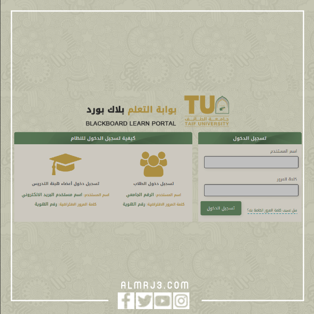 كيف أدخل على منظومة جامعة الطائف بلاك بورد بحساب طالب