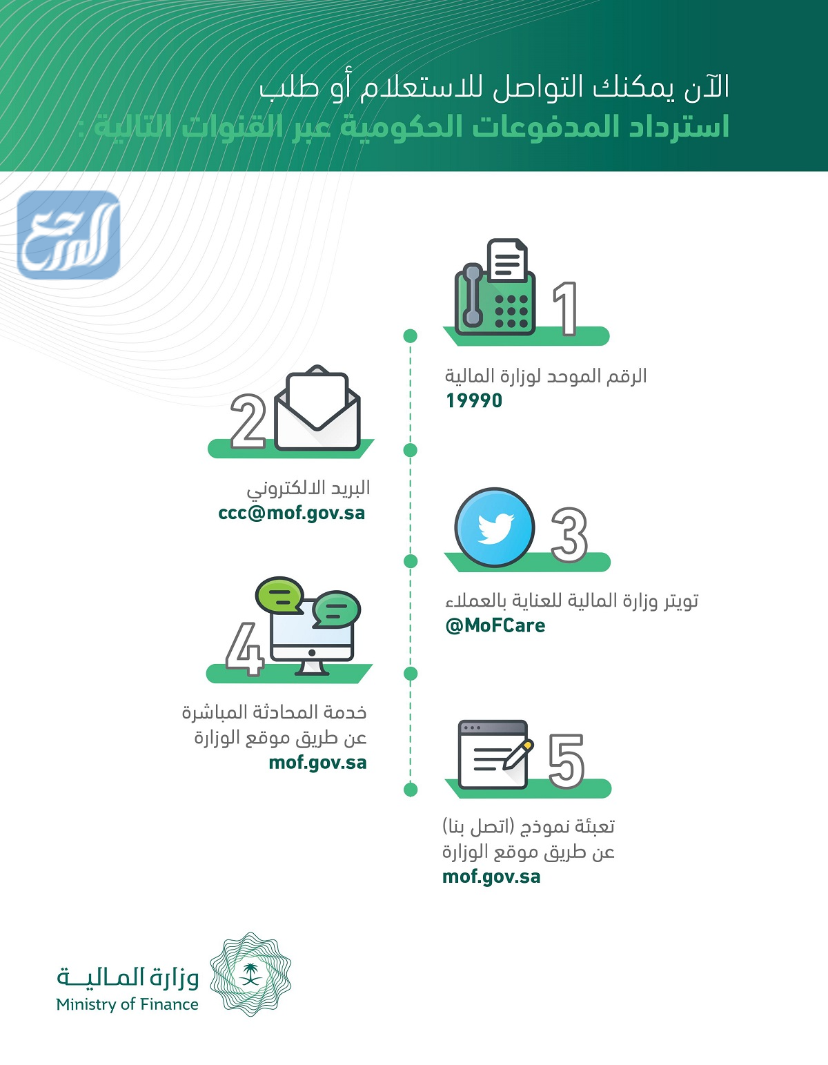 - mof.gov.sa , وزارة المالية تطلق خدمة الاستعلام واسترداد المدفوعات الحكومية عبر قنواتها الاتصالية , 28/07/2021