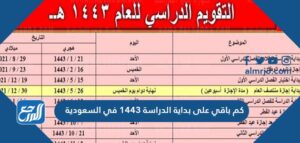 التقويم الدراسي بالمملكة للعام الجديد ١٤٤٣