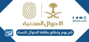 كم يوم وتطلع بطاقة الاحوال للنساء ؟ حيث إنّ معرفة المدة التي يستغرقها إصدار بطاقة الأحوال المدنية في المملكة العربية السعودية من الأمور التي تشغل المواطنات والمواطنين السعوديين؛ لأن حكومة المملكة تشدد على ضرورة أن يحمل كل مواطن في المملكة بطاقة الهوية الخاصة به؛ ولذلك يرغب المواطنون في إصدار البطاقة بشكل سريع، ويستعرض موقع المرجع في هذا المقال المدة التي أعلنت عنها الأحوال المدنية والتي يستغرقها إصدار بطاقة الأحوال لكلا الجنسين، بالإضافة إلى بعض التفاصيل الهامة عن بطاقة الأحوال المدنية.