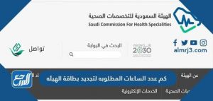 يرغب كثير من الممارسين الصحيّين في المملكة العربيّة السعوديّة بمعرفة كم عدد الساعات المطلوبه لتجديد بطاقة الهيئه السعوديّة للتخصّصات الصحيّة؛ فإنّ الهيئة حدّدت عدد الساعات التي ينبغي أن يقطعها الممارس لتجديد البطاقة مع مراعاة اختلاف التخصّصات؛ حيث تختلف الساعات المطلوبة من الطيب عن الساعات المطلوبة من غيره، كما يؤدّي هذا الاختلاف إلى اختلاف رسوم التجديد أيضًا.