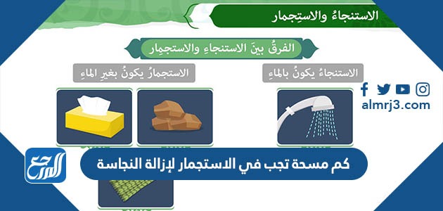 كم مسحة تجب في الاستجمار لإزالة النجاسة هو ما سوف يتم التعرف عليه في هذا المقال، فقد جاءت التعاليم الإسلامية شاملة لحياة المسلم، سواء ما ورد في القرآن الكريم أو في السنة النبوية عن رسول الله صلى الله عليه وسلم، وسوف يقدم موقع المرجع للزوار الكرام بعض المعلومات عن الاستجمار وعن عدد مسحات الاستجمار، وسوف يتم التعرف على حكم الاستجمار في حال وجود الماء والحكمة من ذلك.