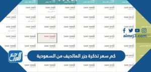إنَّ سِعْر تَذْكَرة جُزْر المَالدّيف من السعوديّة تقدّر بـ 2000 ريال سعوديّ، وهي أرخص تَذكَرة طيران يمكن الاستفادة منها للطيران من السعوديّة إلى جُزرْ المالدّيف فالسفر من المدينة المنورة قد يستغرق قرابة 8 ساعات، ونشير أن أشهر الخطوط الجويّة في المملكة العربية السعوديّة للسفر إلى جُزْر المَالدّيف هي العربية للطيران، والخطوط التركية والاتحاد للطيران.