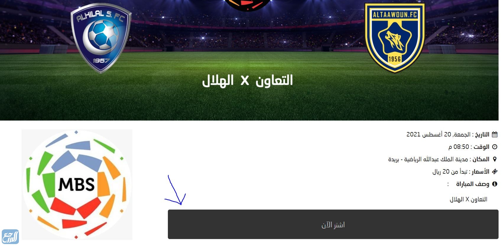 طريقة حجز تذاكر مباراة الهلال والتعاون