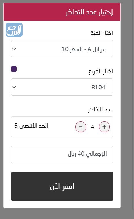 | VIP BOX ( 6 أشخاص) | 4,500 ريال |