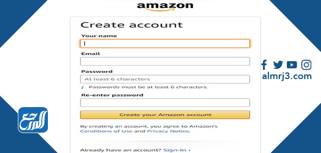 للتسجيل في امازون كزبون جديد لا بد من اتباع الخطوات التالية:
