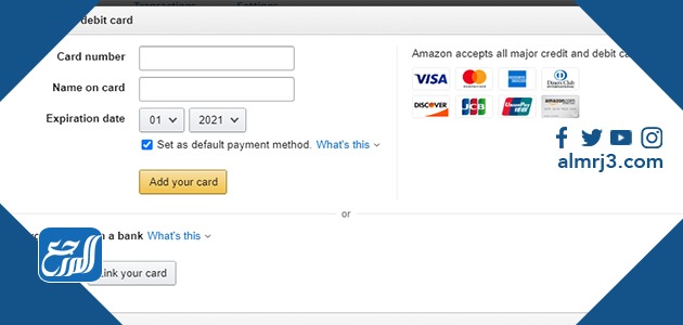 كيفية إضافة بطافة فيزا أو ماسترد كارد في امازون