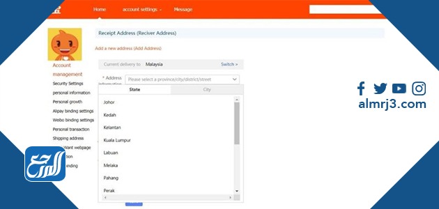 طريقة إضافة عنوان الشحن في موقع تاوباو الصيني