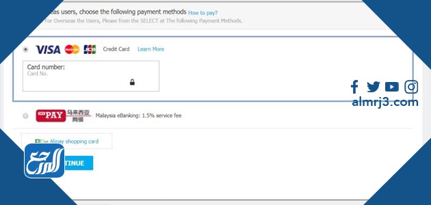 - إدخال اسم بطاقة الدفع الالكتروني ورقم البطاقة.