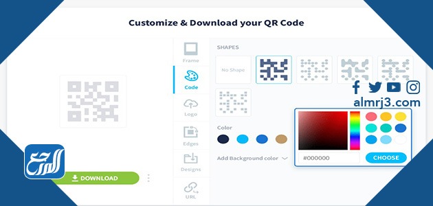- بعد الانتهاء من الخطوة السابقة يمكن للعميل تخصيص وطباعة الباركود الملون الخاص به.