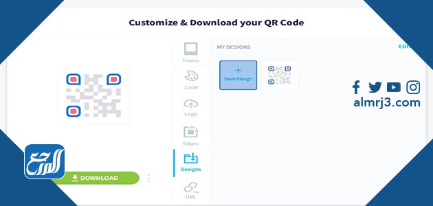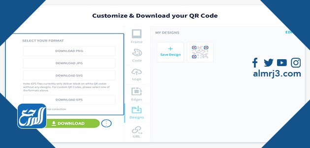 بعد الانتهاء من تصميم الباركود يتوجب على العميل حفظ التصميم في ملف التعريف الخاص به بحيث يسهل عليه استخدامه لاحقاً.
