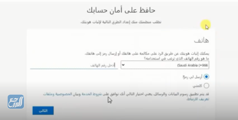 - تأمين الحساب بِإدخال رقم الجوال وكتابة رمز التحقق الذي يصلُ إليه.