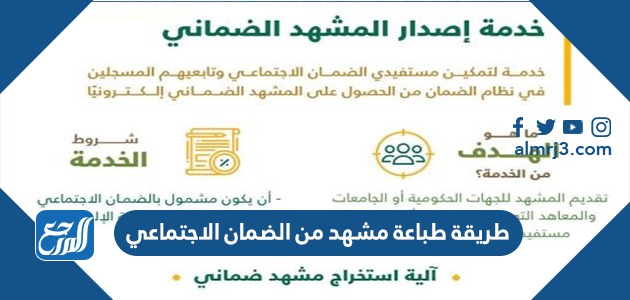 يُمكننا اتّباع طريقة طباعة مشهد من الضمان الاجتماعي 1447 لإصدار مشاهد ضمانيّة مُعتمدة من خلال شبكة الانترنت ودون الحاجة إلى زيارة أيّ من فروع وزارة الموارد البشريّة والتنمية الاجتماعيّة في المملكة العربيّة السّعوديّة، ويساعدنا موقع المرجع في معرفة خطوات طباعة مشهد إلكترونيّ من الضّمان الاجتماعيّ بالإضافة إلى ذكر العديد من التّفاصيل حول خدمات الضّمان الاجتماعيّ في المملكة.