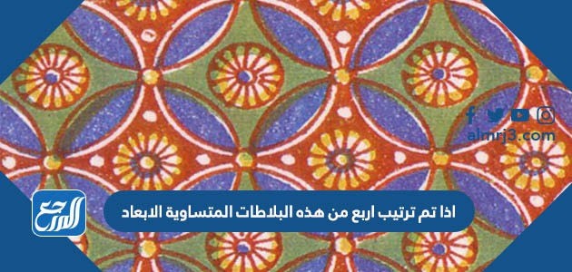 اذا تم ترتيب اربع من هذه البلاطات المتساوية الابعاد ، من ضمن الأسئلة المدرجة في مناهج مادة الرياضيات التي تُدرس في مختلف المراحل التعليمية في المملكة العربية السعودية، حيث تُعتبر علوم الرياضيات من أهم العلوم التي اشتملت عليها مناهج المواد التعليمية، فقد نجد أن العلم الذي قام بالاهتمام بالرقي والتقدم وتنمية المهارات لدى الطالب، مما يؤدي إلى النهوض بالمستوى الابتكاري والفكري للمجتمعات، كما أنه العلم الذي قد ضم العديد من العلوم المتعلقة بالمعاملات التي نحتاجها في الحياة اليومية والتي من ضمنها، الجبر والهندسة وغيرها، وتعقيبًا على ذلك سوف يقوم موقع المرجع بإلقاء الضوء على إجابة سؤال اذا تم ترتيب اربع من هذه البلاطات المتساوية الأبعاد.