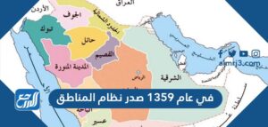 في عام 1359 صدر نظام المناطق حيث إنه عبارة عن تقسيم في كل منطقة في المملكة العربية السعودية إلى مجموعة من المحافظات، والتي يكون تصنيفها هو أ، ب، ج، والهدف من هذا تسهيل تقديم الخدمات لكافة المواطنين، بالإضافة إلى أنه لكل منطقة أمير يتولى مسؤوليتها، ولذا فإنه من خلال موقع المرجع سنوضح في عام 1359هـ صدر نظام المناطق.