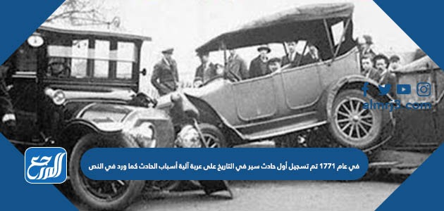 في عام 1771 تم تسجيل أول حادث سير في التاريخ على عربة آلية أسباب الحادث كما ورد في النص