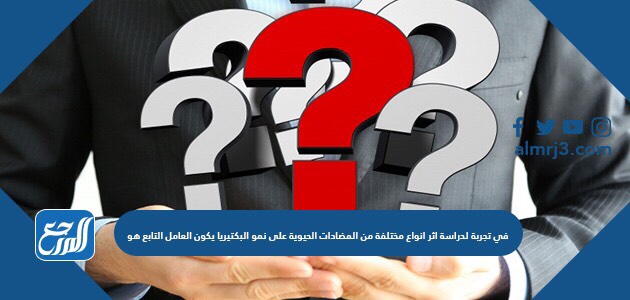في تجربة لدراسة اثر انواع مختلفة من المضادات الحيوية على نمو البكتيريا يكون العامل التابع هو