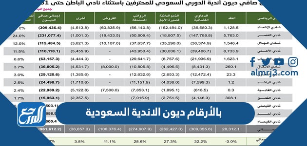 عرضنا بالأرقام ديون الاندية السعودية 1443 سواء أندية دوري كأس الأمير محمد بن سلمان للمحترفين أو أندية دوري يلو للدرجة الأولى؛ حيث شملت القوائم ستة أندية فقط دون ديون، وأما باقي الأندية فهي مطالبة بسداد ما عليها من التزامات مالية حتى تستطيع قيد لاعبيها الجدد في فترة الانتقالات القادمة.