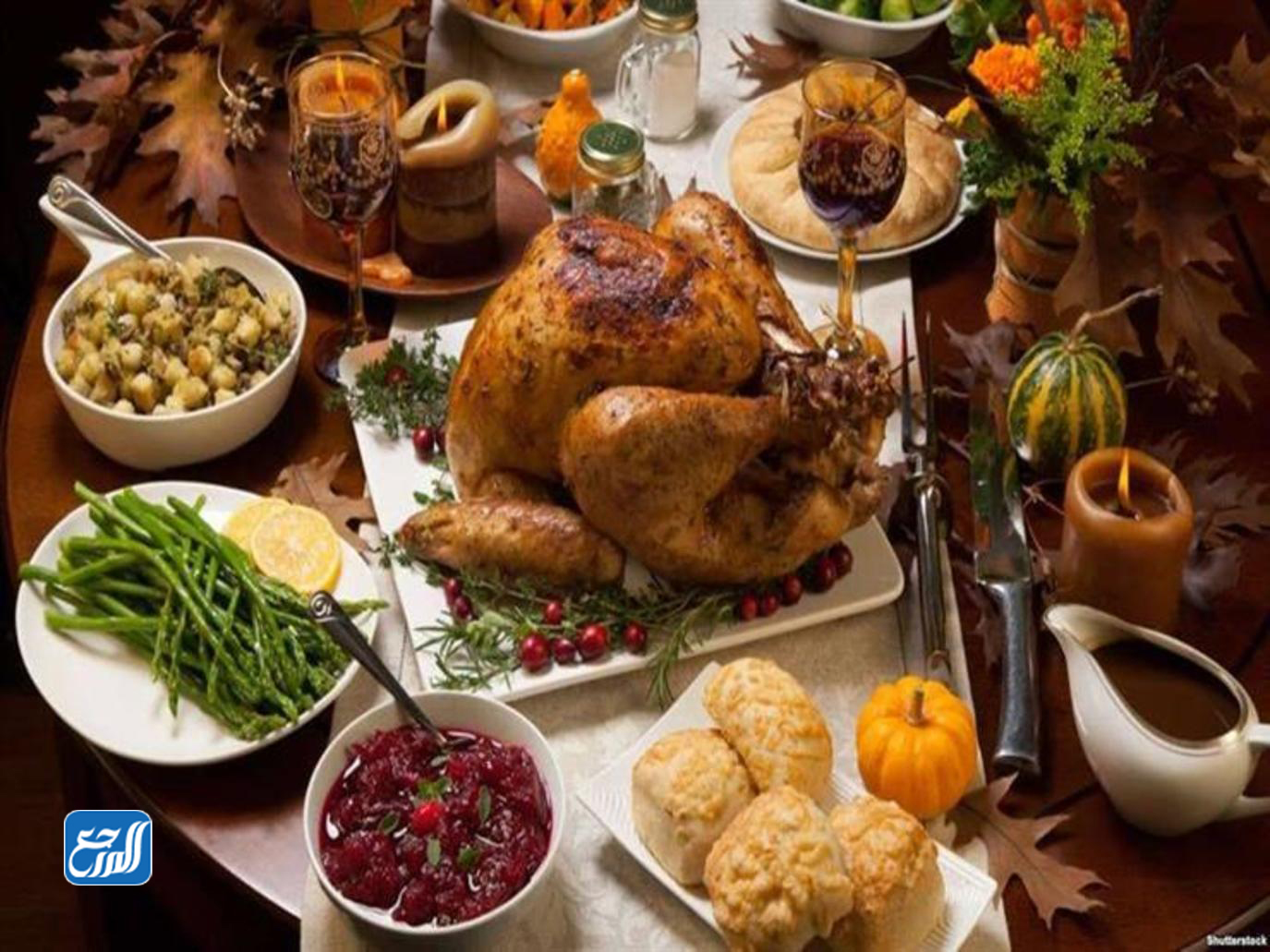 - يتم تقديم الديك الرومي بجانب الخضار السوتيه والأرز البسمتي الأصفر.