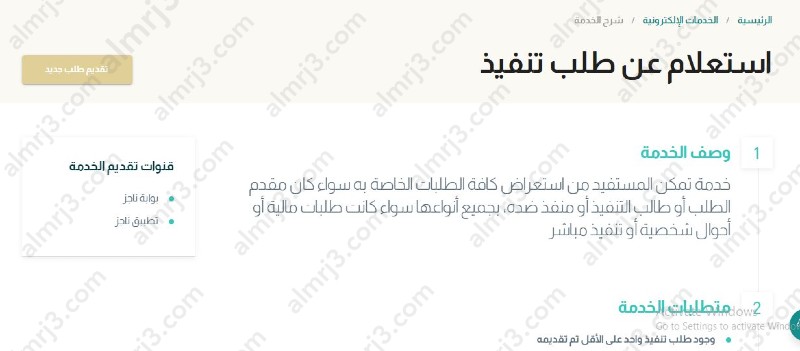 - الضغط على خدمة (استِعلام عن طَلب تَنفيذ).