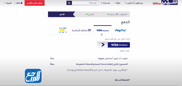 - اختيار باي بال أو فيزا كارد أو بطاقة ائتمانية للدفع مقابل الشحن.