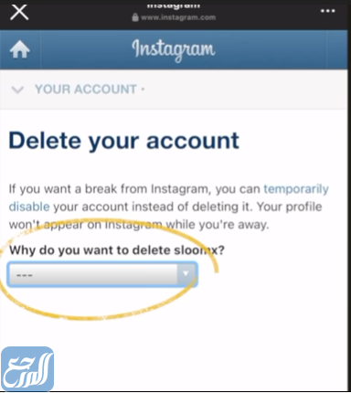 - النّقر على رابط الحذف الدّائم لحساب انستقرام.