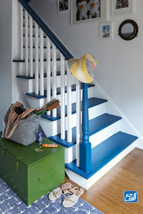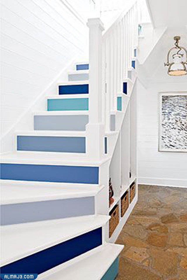 - تدرج ألوان الدرج، مثل استخدام 3 درجات من اللون الأزرق ودهنها بالدرج الداخلي بشكل تدريجي.