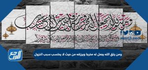 كما يقدم موقع المرجع جملةً من أفضل وأجمل الصور التي تحمل الآية الكريمة، والتي يبحث عنها الكثير من المسلمين لنشرها على منصات التواصل الاجتماعي لعلها تلامس أرواح المسلمين وتردهم إلى دينهم وتقواهم، وفيما يأتي صور ومن يتق الله يجعل له مخرجا: