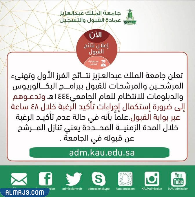 نتائج القبول في جامعة الملك عبد العزيز 1444