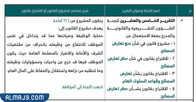 - يتضمن مادة تنص على دور جهة العمل في حال وجود تعارض مصالح وتحديد الوقت اللازم للإبلاغ.