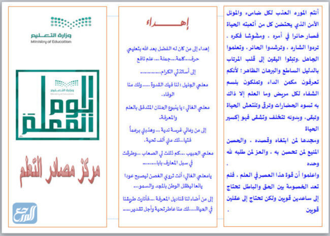 مطويات عن يوم المعلم جاهزة للطباعة 1447
