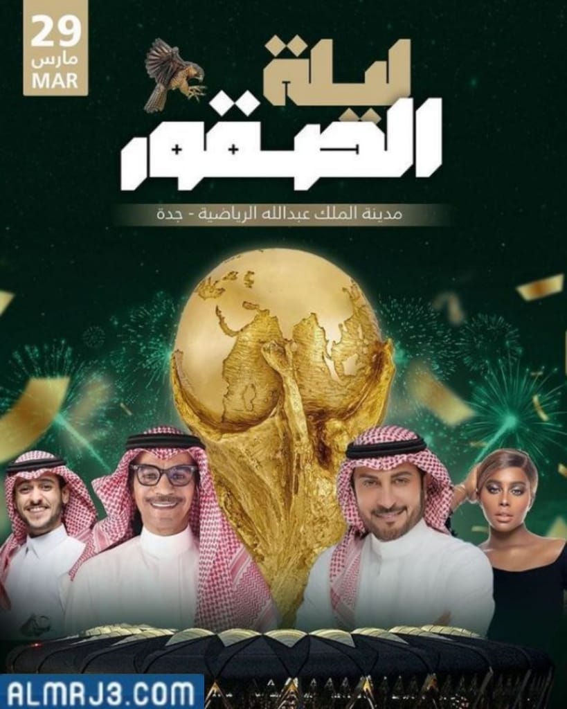 تشهدّ حفلة ليالي الصقور إحياء غنائي مثير لدرجة كبيرة جدًّا إثر قدّوم مجموعة من الفنانين على مُستوى المملكة العربية السعودية، يترأسهم الفنان السعودي رابح صقر ومجموعة من الفنانين كان المُغني الشهير ماجد المهندس بالإضافة إلى كل من الفنانة داليا مبارك والفنان عايض يوسف القرني، وهذه الحفلة سوف تُقام خصيصًا نتيجة تأهل المنتخب السعودي وهو الآن في ختام تصفيات كأس العالم قطر 2022، حيث أن الجمهور السعوديّ سعيد جدًا بوصول المُنتخب إلى هذه المرحلة.