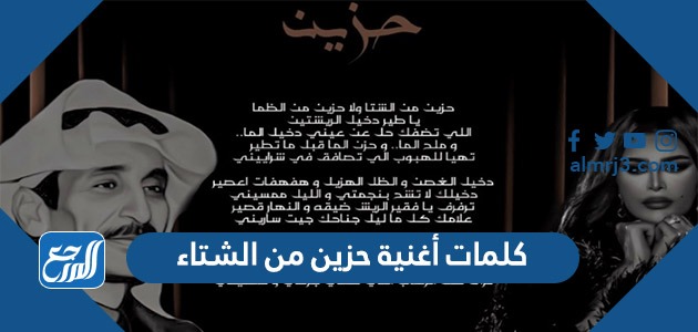 كلمات أغنية حزين من الشتاء، هناك العديد من الأعمال الفنية والموسيقية الجميلة التي تلامس بكلماتها الجميلة مشاعر المستمعين، وقد كانت أغنية حزين من الشتاء من الأغاني التي حصدت شهرة واسعة نظرًا لتأثيرها لكل من يستمع لهذه الأغنية التي تزيد من الحين والشوق إلى الحبيب خاصة في فصل الشتاء هذا الفصل الذي يشعر فيه الشخص بالوحدة، من خلال موقع المرجع سوف نتعرف على أغنية حزين منَ الشتاء التي أخذت مؤخرًا شهرة واسعة على مواقع التواصل والاستماع المختلفة.