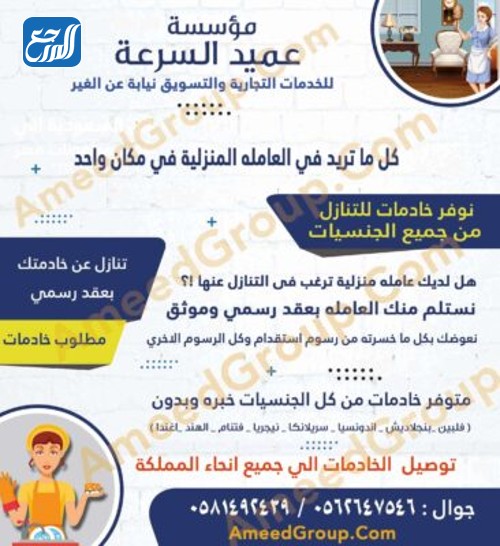 - يوفر المكتب خادمات ونعوضك بكل ما خسرته.