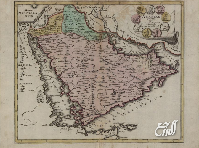 إن أقدم خريطة ظهرت لمنطقة شبه الجزيرة العربية قاطبة؛ يعود تاريخ نشرها تحديدًا إلى عام 1720م حيث يظهر بها العربية البترائية وكذلك العربية السعيدة إلى جانب بعض الدول الأخرى مثل بلاد ما بين النهرين، بلاد فارس، مصر، فلسطين، الحبشة، وغيرهم، وفي هذه الخريطة تظهر أسماء المدن و القبائل والأحياء التي قد استخدمها بطليموس ويُذكر أن هذه الخريطة العريقة قد تم وضعها بواسطة كريستوفر فايغل، وهي تحمل شكلًا وأسماء مختلفة تمامًا عمّا هي عليه الآن.