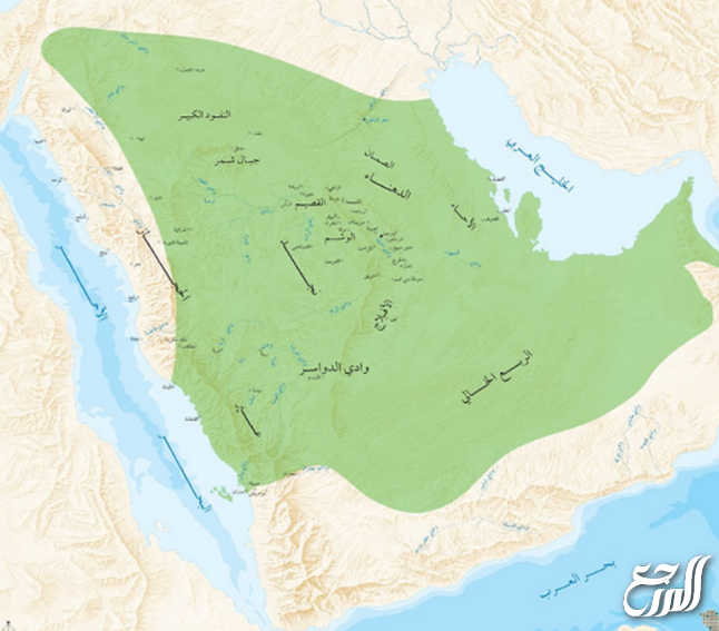 خريطة امتداد الدولة السعودية الاولى في عهد محمد بن سعود