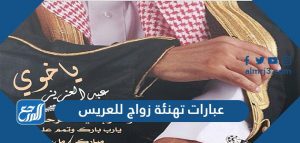 - تهنئة زواج للعريس “الاسم” تتعالى الاصوات وتمتزج العبارات وتأبى الانامل إلا ان تخط كلمات التهنئة القلبية بحروف تتراقص على أوتار القلوب الفرحة بمناسبة زواجك فاقول لك زواج سعيد وبارك الله لكما وبارك عليكما وجمع بينكم على خير.