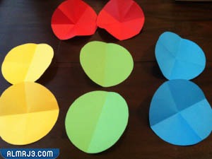 - البدأ برسم شكل دوائر متساوية على كل لون من الأوراق الملونة، ويمكن رسمها على ورق أبيض ثم تلوين الدوائر.