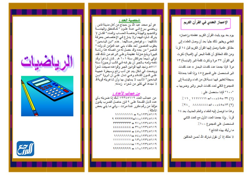 يُمكن تحميل مطويات لمادة الرياضيات بصيغة pdf من خلال الروابط الموضحة أدناه: