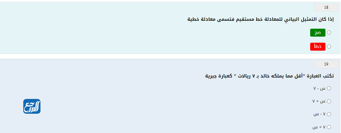 وفرنا لطلاب وطالبات الصف الأول المتوسط في المملكة العربية السعودية نماذج اختبارات إلكترونية، للتدريب على حل معادلات ومسائل مادة الرياضيات، ويمكن حل هذه الأسئلة من خلال الصور التالية: