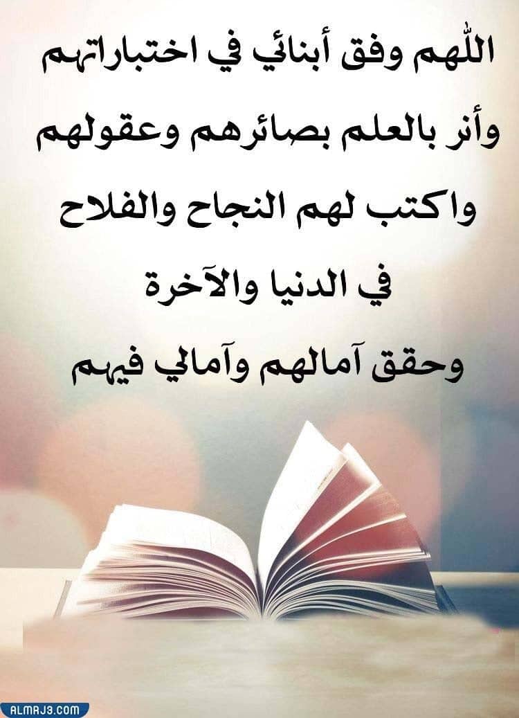 - نسألك يا الله أن ترزق أولادنا التوفيق والحكمة، اللهم نور عقولهم وأرشدهم للإجابات الصحيحة في الامتحانات، وأعنهم على إتمامها والنجاح فيها بأعلى الدرجات.